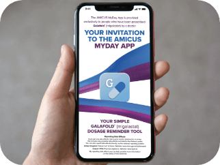 The MyDay App is designed to help you to establish a routine for taking your Galafold capsule.